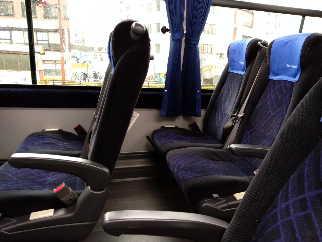 ただバスは平日なので2席を一人でつかえるし、コンセントあるし、WIFIもあったので、よかったが、時間がよめないので、その点は注意が必要。あとバスも予約できないけど、ちょこちょことまるし、ちょこちょこ乗ってくるのでゆったり座れるかは微妙。
