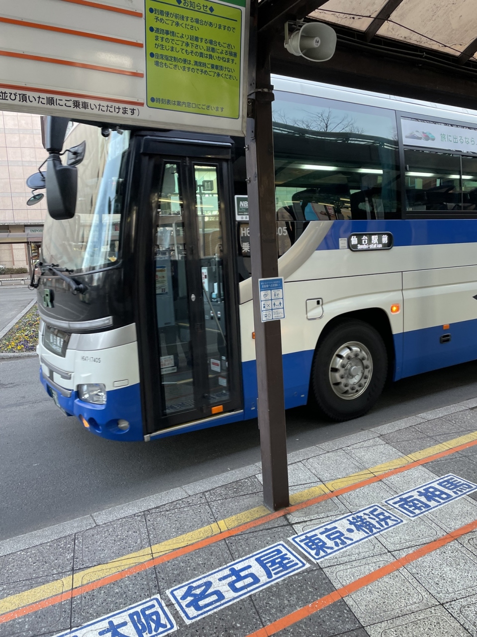 新幹線が休業しているのでバスで移動。予約制でらないので早めに出て福島駅で待っていましたが、意外にもバスは空いていました。福島から仙台まで90分程度、快適な移動でしたしリーズナブルでした。昼間は混んでいるかもしれません。