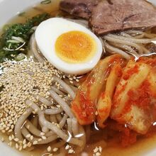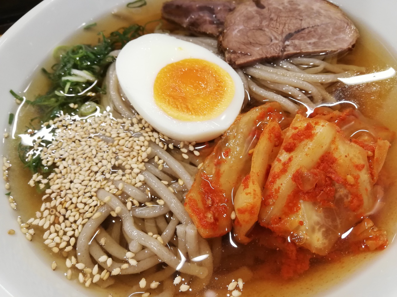 別府温泉に来たら やはり とり天に海鮮 冷麺など 様々なグルメがあるが 今回は冷麺を チョイスしました。 行列ができる人気店というこの六盛さん、 しかし お客さんは並んでいるどころか 店内は結構半分ぐらい空いておりましてラッキーでした。 平日ということもあって実際はこんなものなのかなと思いました。 そして待つこと5分冷麺の到着 麺はコリコリ感のあるやや硬めんで 中華麺というよりかは蕎麦に近い感じがしました。 実際には蕎麦がだいぶ配合されているようです。 めんつゆもそれほど 辛くはなく 酸っぱくもなく 出汁のよく効いたつゆでした。 全体的に上品な味わいで 完成度がかなり高い 逸品だと思います。 同じ冷麺でも盛岡の冷麺とは全く一線を画すものだと思いました。
