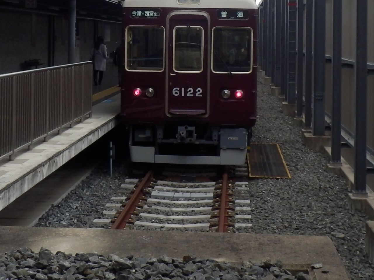 阪急線西宮北口~阪神線今津へ乗り継ぎは、阪急今津線が可能。今津線は宝塚と今津間であるが西宮北口駅で分断しているので別線と同じ扱い、全線が高架、3両固定編成 ワンマン、平時は10分毎運転、全線乗車時間5分、車庫へ入出の為西宮北口の手前で地上線の神戸線への引き込みがある 途中阪神国道駅のみ、沿線は工場、自動車販売、倉庫など雑多な地域で観光としての車窓風景に見るものはない