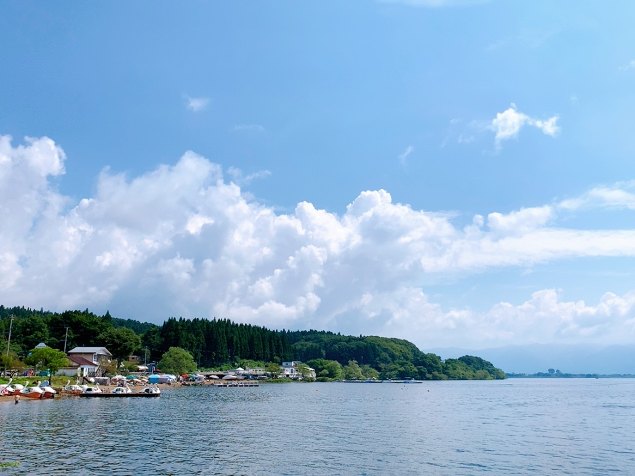 私は滋賀県在住なので、湖と言ったらやっぱり琵琶湖! 色々な場所の湖を訪れましたけど、やっぱり琵琶湖と比べてしまいます…。 猪苗代湖は日本で4番目に大きな湖だそうですが、湖岸沿いが山道のような道もあって道が狭かったり、都心から個人所有のプレジャーボートを牽引して遊びに来る人がこんなに多いなんて驚きでした! そういう人って結構イカつい車に乗ってたりするので、トラブルにならないようにちょっとドキドキしながらすれ違ったりして…。