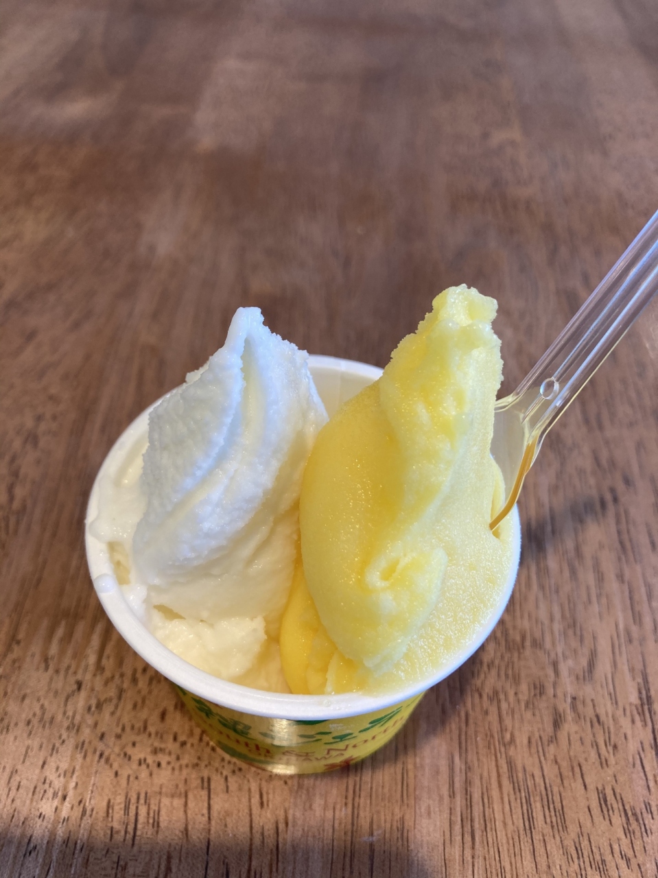 悩みに悩んで、マイヤーレモンヨーグルトとタンカンのダブルを注文。