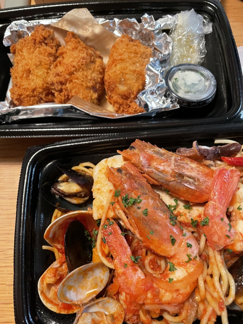 東京駅の地下にあるレストラン。テイクアウト利用。牡蠣が有名らしいですが、生のもの以外は全てテイクアウト出来るそうです。海鮮のレストランなのでとても美味しかったです。カキフライは衣がシッカリ厚めで食べ応えあり。接客もとても丁寧でした。