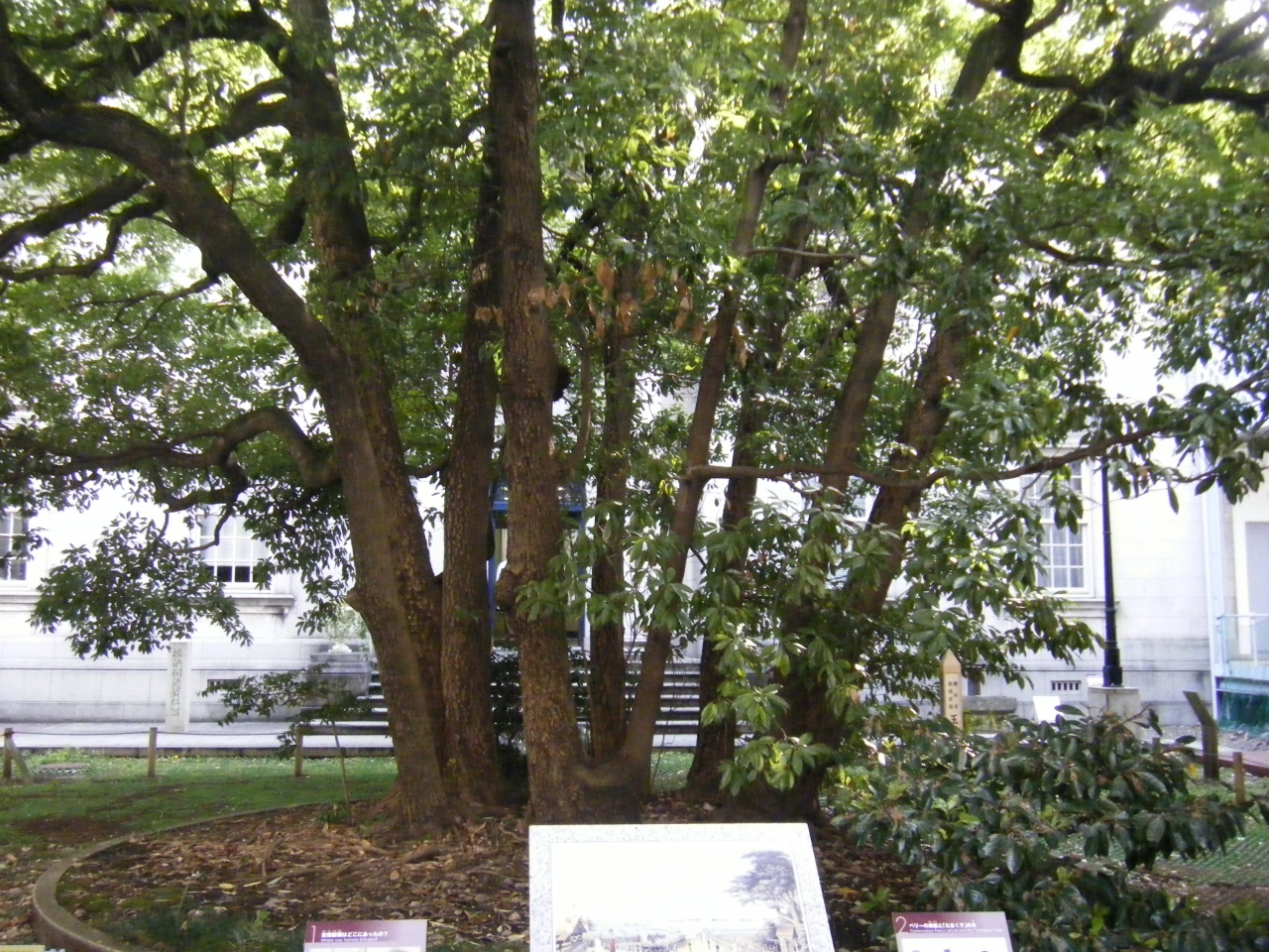 2021年3月に横浜みなとみらい地区を散策した際に立ち寄りました。大さん橋の入口そばにある「横浜開港資料館」の敷地内にあります。資料館の内部は入館料がかかりますが、中庭にある「たまくすの木」は無料で見学することができます。説明書きによりますと、この玉楠の木は江戸時代から存在しており、江戸時代の末期の大火や関東大震災によって大きな被害を受けますが、それでも新たな芽をふき、現在まで生き延びているという大変な歴史を歩んできているそうです。そういう歴史を知ると、なんだかとても愛おしい存在に感じますね。