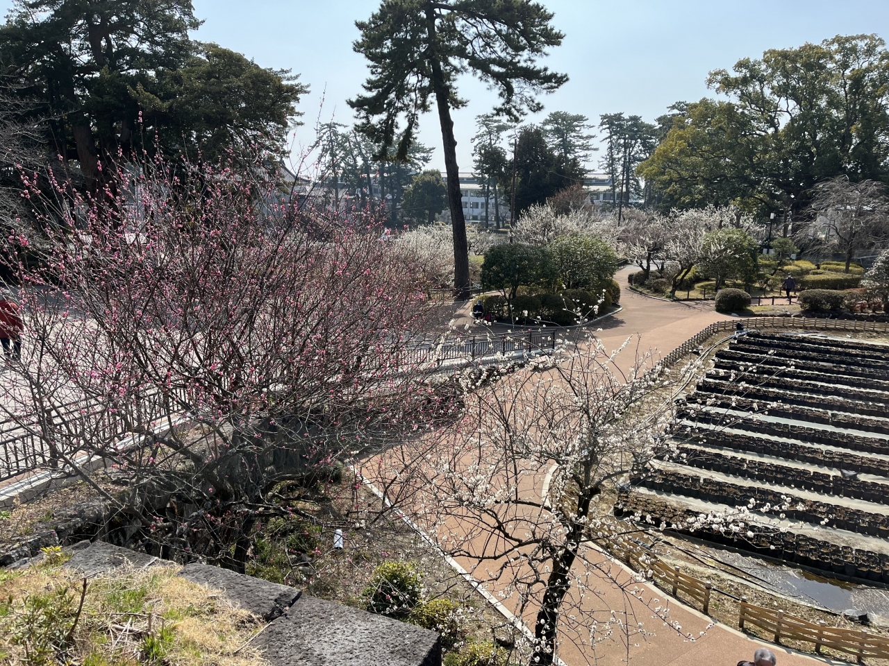 小田原駅から徒歩でアクセスできます。天守閣を中心としたエリアが広い公園となっています。天守閣など一部の施設は有料ですが、園内は自由に散策できます。園内には、桜をはじめとして、梅園や菖蒲園があり、四季折々の花を楽しめます。見頃は過ぎていたものの、まだ梅の花を楽しむことができました。
