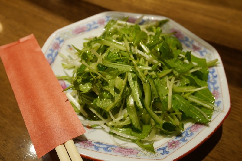 中華バルの名前の通り、ちょっとおつまみ、ちょっとお酒を一人でも気軽に楽しめるお店。味付けはちょっと濃いめぎみかな〜と感じたところはあるものの、お酒に合わせることを考えたらそうなのかもなと思ったり。ラオフーサイという青唐辛子のサラダおつまみが、おいしかったですね〜(写真)。