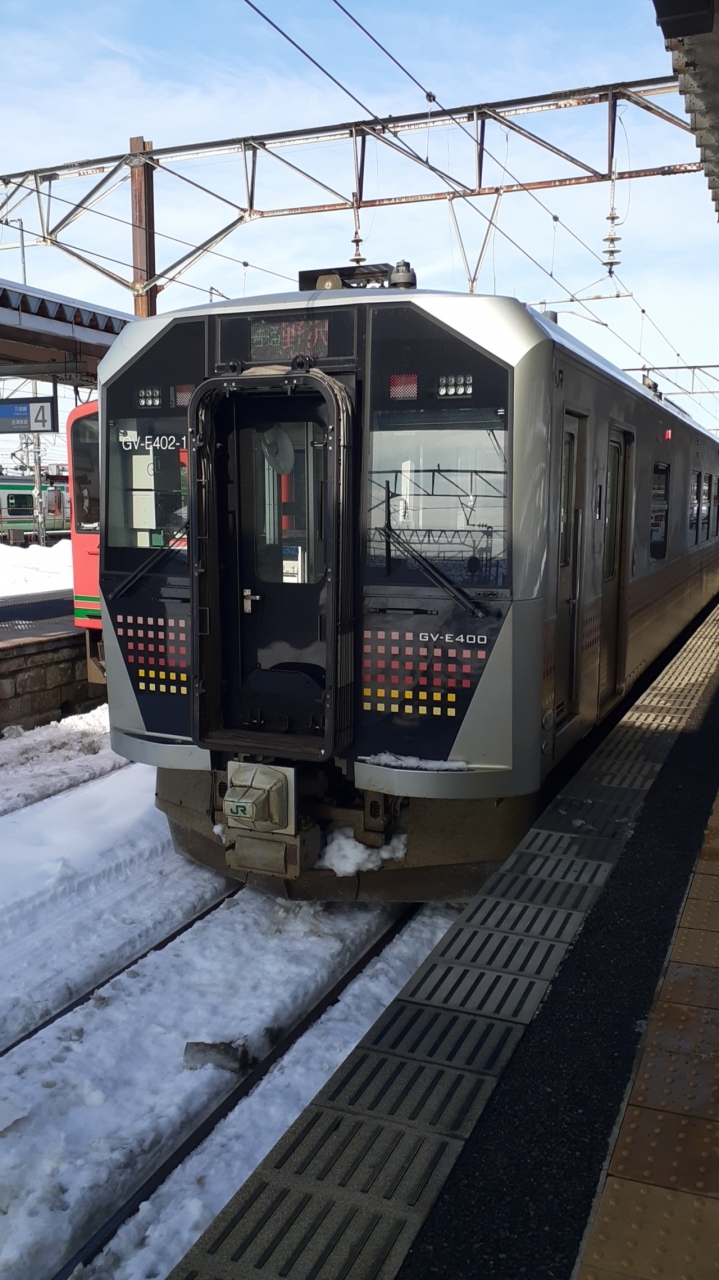 2022年1月23日現在、GV-E400系という電気式の車両が使用され、2両編成での運転でした。