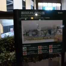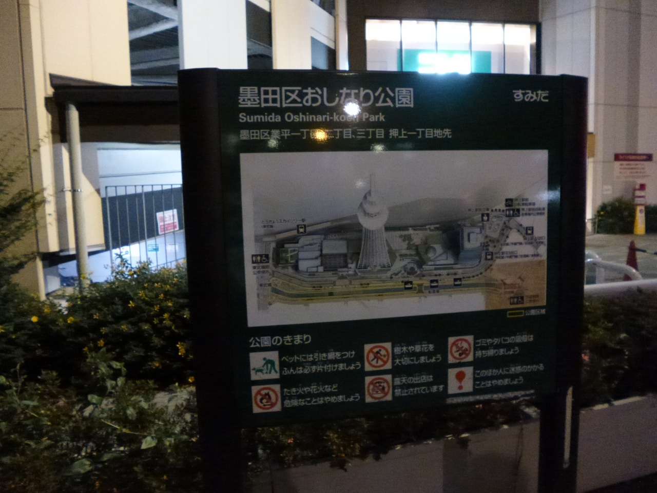 押上のスカイツリーの目の前にある公園です。スカイツリーの開業と共に整備され、北十間川の東武橋から京成橋までの間、遊歩道や親水テラスが整備されています。公園内には南北を結ぶ歩行者専用のおしなり橋があり、ここからスカイツリーを撮影している人を多く見かけます。