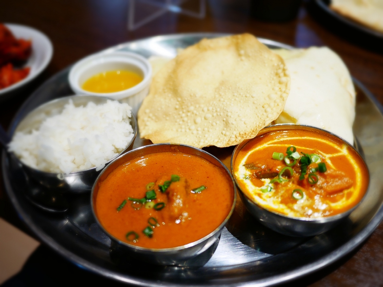 他に、ライスとパパド、チキンティッカ等が付いています。