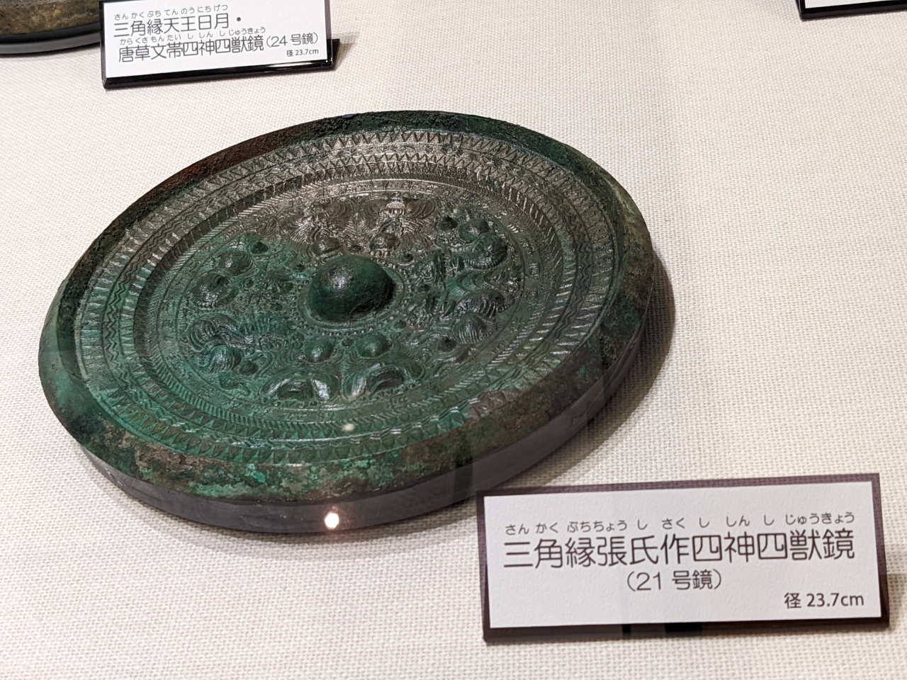 うねり山御陵前駅から徒歩5分ぐらいで到着します。最近リニューアルしたそうです。奈良周辺から出土した展示品が時代ごとに並べられています。お目当ては黒塚古墳出土の鏡で約30個ほど、レプリカではなく現物が展示されていました。よい目の保養になりました。