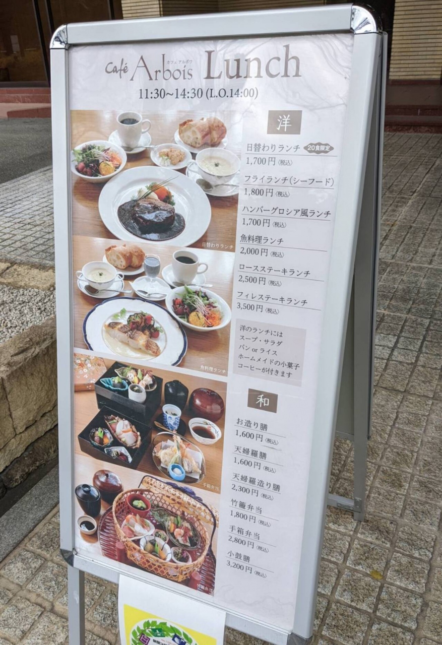 カフェ アルボワは、京都御苑近くの京都平安ホテル内にあるカフェ&レストランです。店内は落ち着いた雰囲気で良かったです。ランチタイムなら洋食または和食メニューがあります。和食メニューには、竹籠弁当や手箱弁当などがありますが、綺麗な盛り付けなので、味わいだけでなく、見た目でも楽しむことができます。