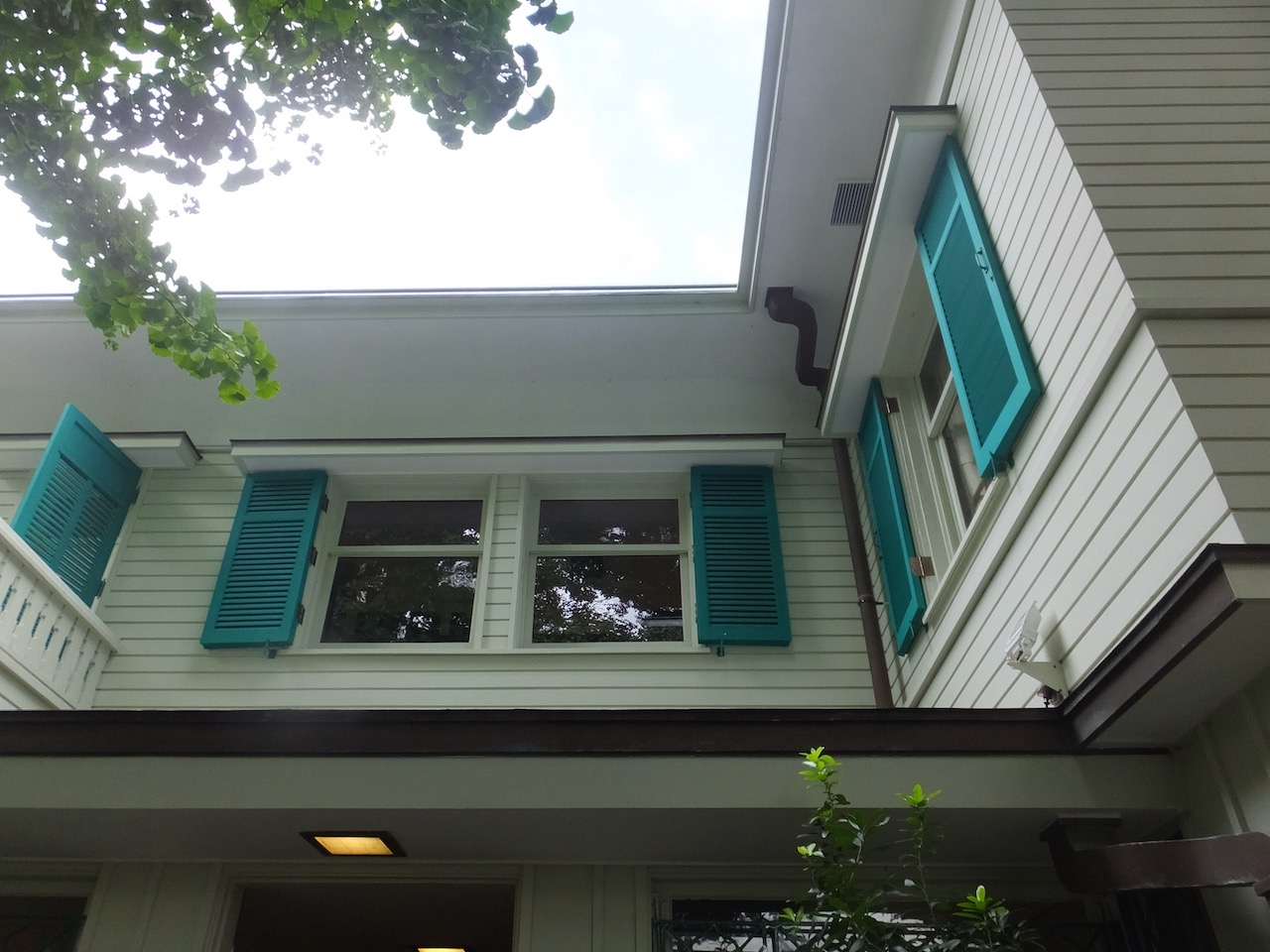 横浜市所有の無料公開9館のうちの1館です。ほぼ同じ場所にあるベーリックホールが暖かな明るい印象なのに対し、このエリスマン邸は白を基調に窓枠というか雨戸が緑で爽やかな印象です。