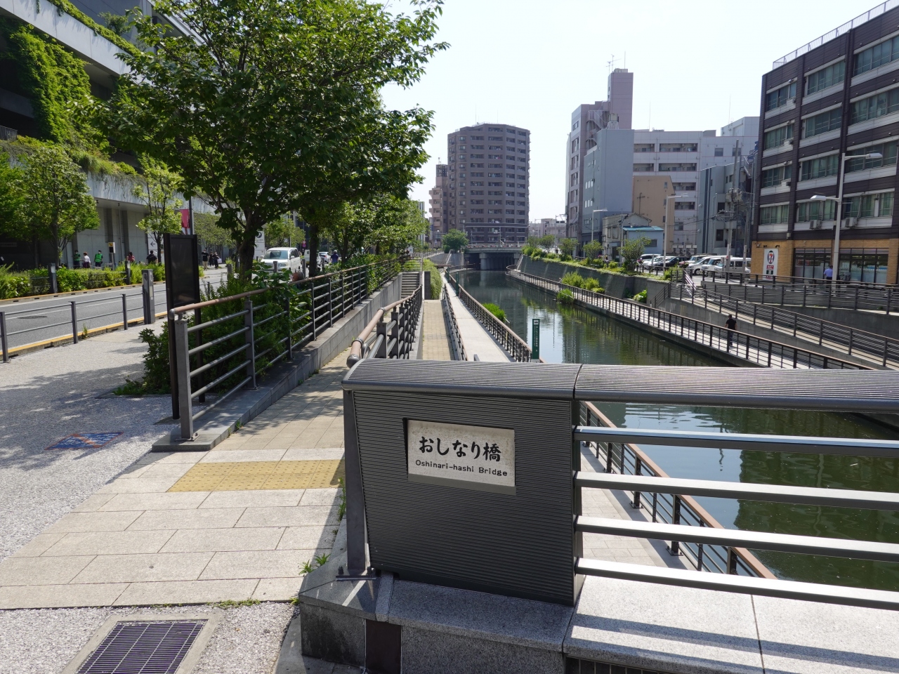 押上のスカイツリーの前を流れる、北十間川。スカイツリーの前の部分が、親水公園のおしなり公園となっています。その親水公園内、歩行者専用の橋として架かっているのが、おしなり橋です。2012年スカイツリーの開業当時は多くの人で混雑していましたが、今はゆっくり写真が撮れます。