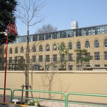 都営新宿線・市ヶ谷駅A3出口から300mほど、東郷元帥記念公園の隣に建っています。1903年に建てられた歴史ある小学校で、4年ほど前に新校舎が竣工しました。窓がアーチ形をしていたり、4階部分がガラス張りだったり、かつての校舎の外観を継承しつつ、近代的な施設が整った学校です。校舎内には東郷元帥が使用していた洗面台も残っているようですが、学校関係者でないため見学できませんでした。