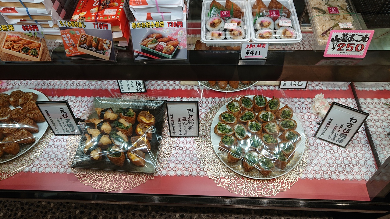 稲荷寿司で有名な、壺屋さんの、カルミア内に立地する支店です。3月中旬の週末の午前11時台に訪問しました。店頭はお客さんで賑わっていました。購入したのは、「山菜おこわ」もっちりした食感が特徴的で、おいしくいただけました。