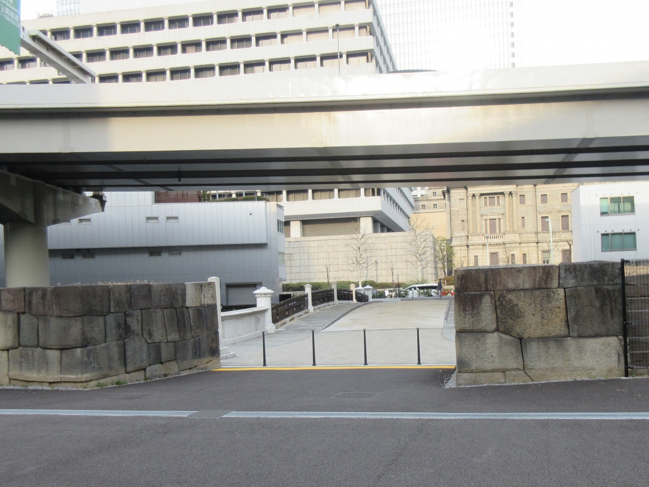 門跡の中央がちょうど古い常磐橋へと続いています。この「ときわばし」は、「盤」ではなく「磐」の古い橋です。