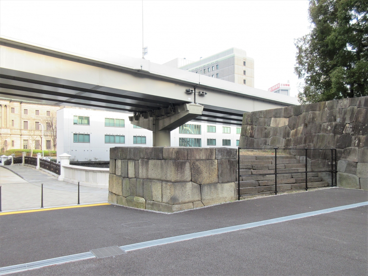 渋沢栄一の銅像の背後に常盤橋門跡があります。大きな石垣が両方にあって、まるでお城の正面入口の門跡のように隙間のない石垣がただもんではない場所であることがうかがえます。