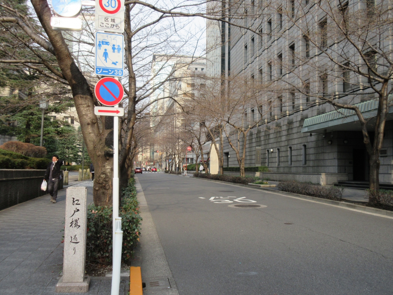 日本銀行本館と別館の貨幣博物館の間にある道路で、桜並木になっています。