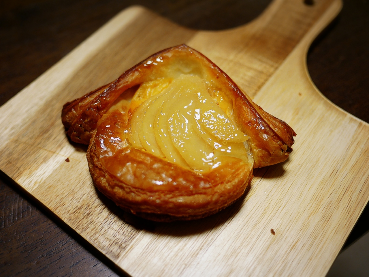 ---生地は定評のあるクロワッサンに、濃厚なカスタードと爽やかな甘さのポワールを合わせていて、此方もお気に入りで、いつも購入させて頂いているデニッシュ系アイテムです。