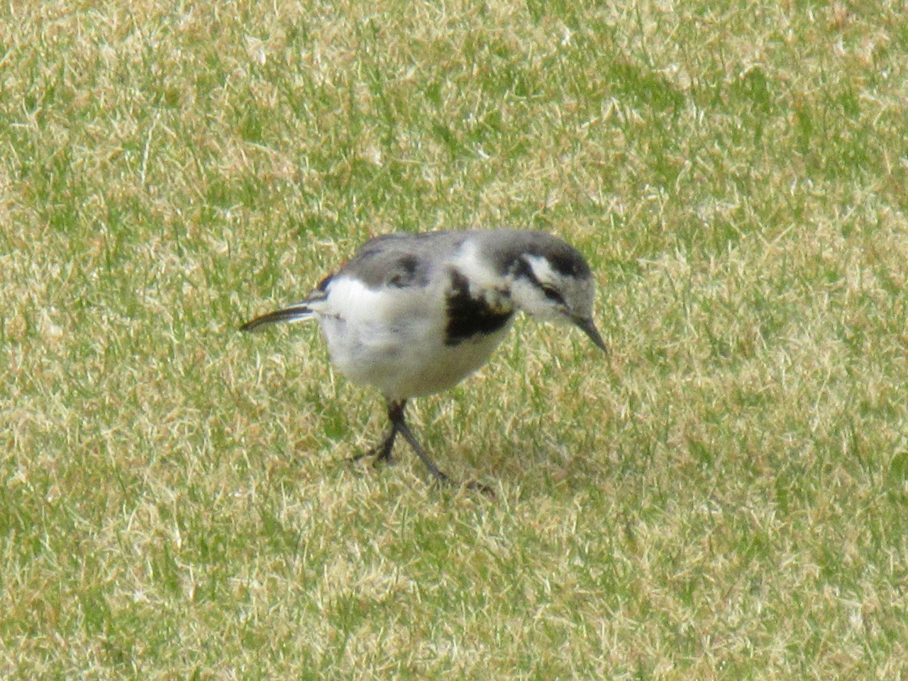 ふと見ると、小さな野鳥が見えました。カメラのズームを使って撮ると、ハクセキレイとムクドリでした。