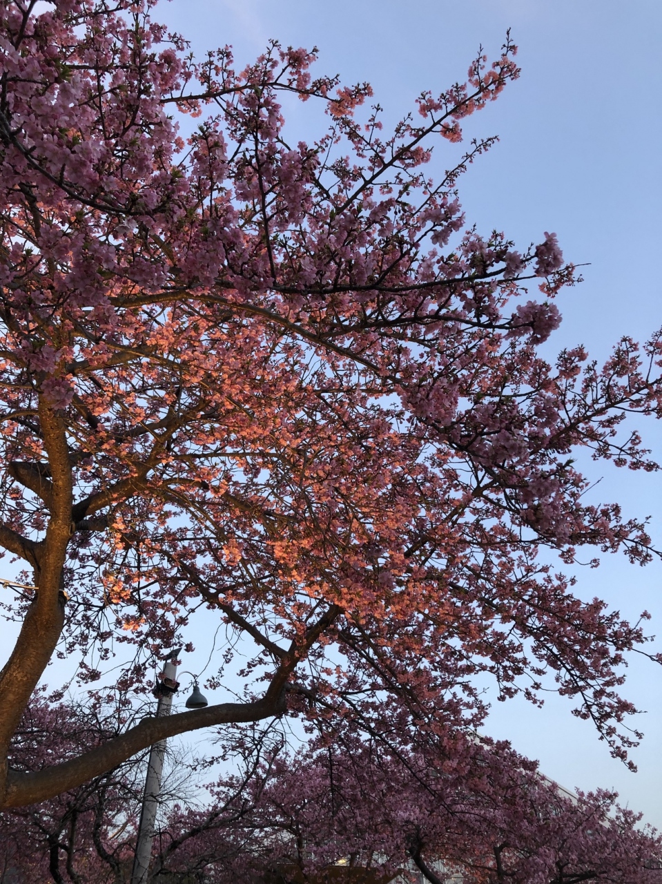 園内も、1番好きな河津桜が満開。濃い色の桜はとても素晴らしい。メジロが蜜を吸いにきていました。