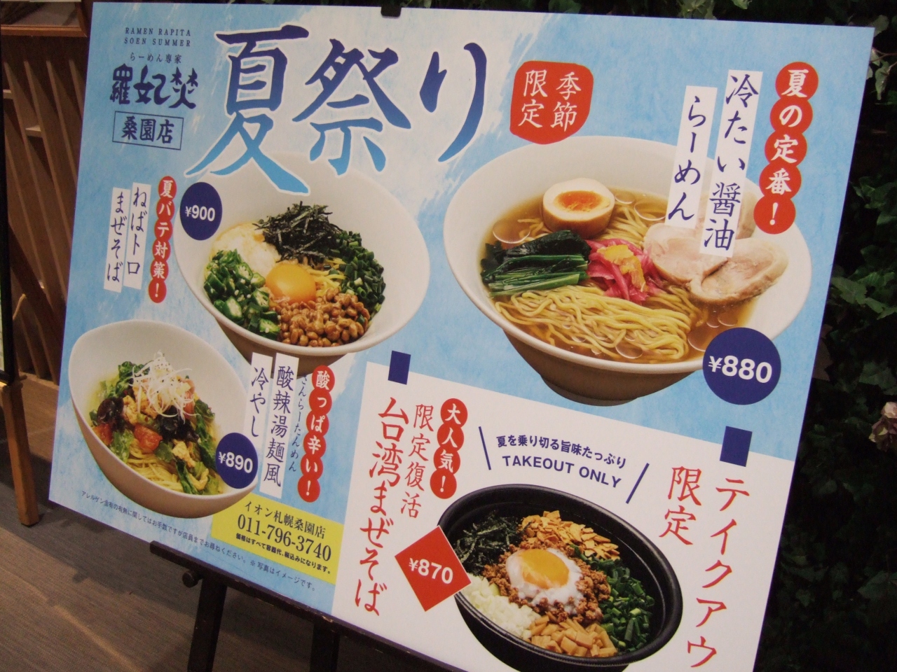 札幌駅の一つ小樽寄り、桑園駅前のイオン1階にあるラーメン屋さん。同じフロアには餃子の王将もありますが、こちらの方が落ち着いた雰囲気です。