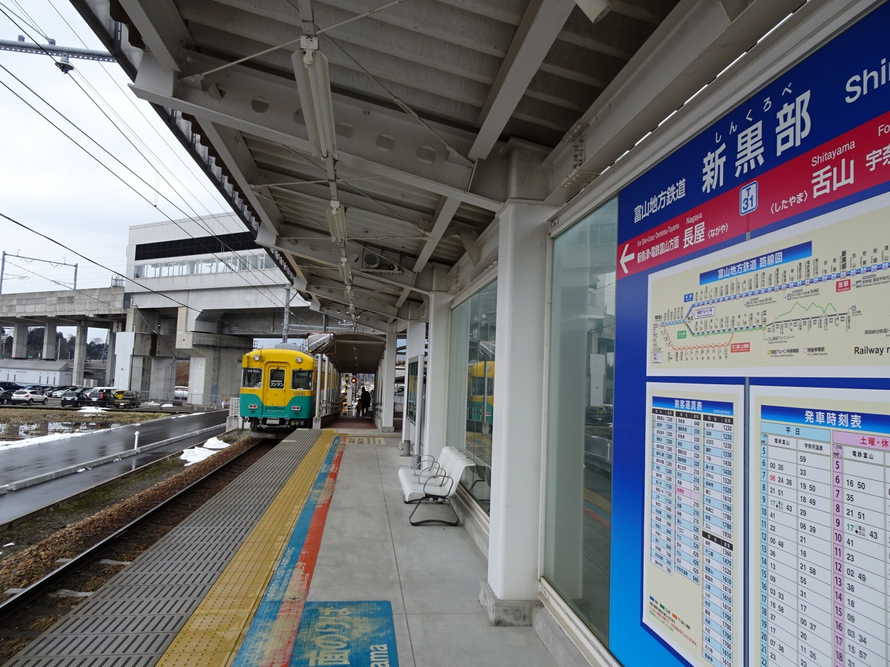 2015年、北陸新幹線開業に伴って新しく出来た新幹線専用駅。名称が「黒部宇奈月温泉駅」ですが、宇奈月温泉の最寄駅ではありません。宇奈月温泉へ行くには隣接する富山地方鉄道の新黒部駅に乗り継いで、さらに10駅乗らなくてはなりません。