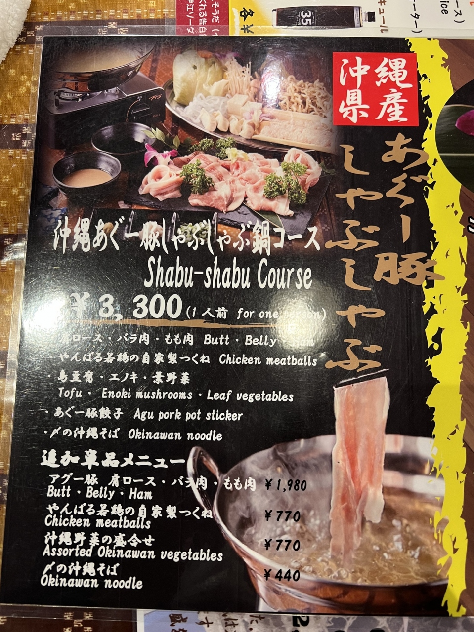 一人旅でしたがあぐー豚のしゃぶしゃぶを食べたくて街道沿いのこちらのお店に伺いました。