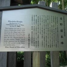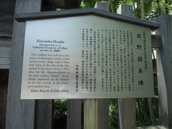説明板によると、本陣は江戸時代末期に日野宿名主を勤めていた下佐藤の住宅として建てられたもの。