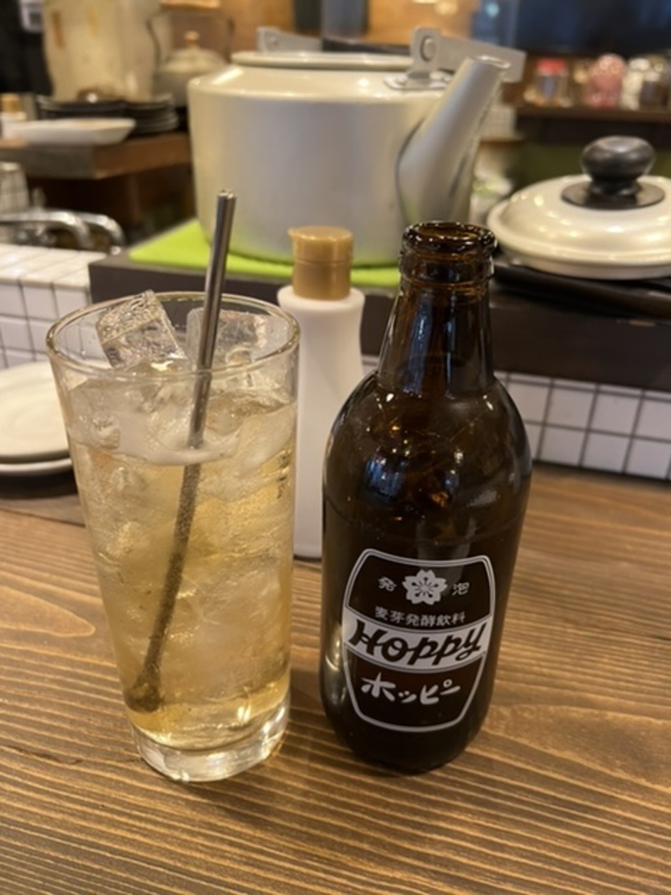 先ずは生ビールに煮込みの黒!ここの煮込みは美味しいんですよ。そしてホッピーセットに。続けてピリ辛の煮込みの赤!酒が進みます。