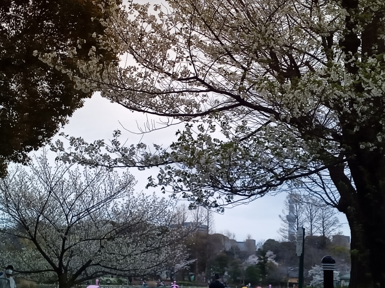 綺麗な桜が咲くなか「東京スカイツリー」と不忍池の「弁天堂」と一緒に見られる光景はちょっと不思議な雰囲気もでもあり、面白いです。