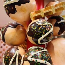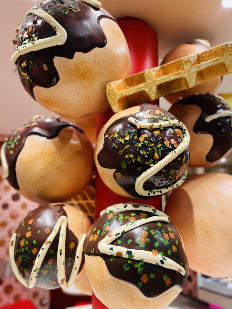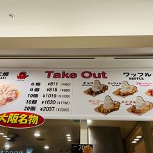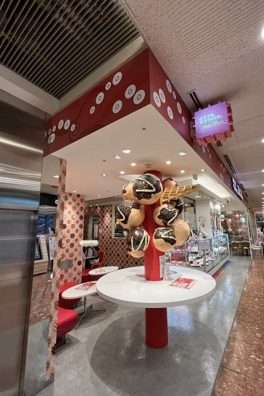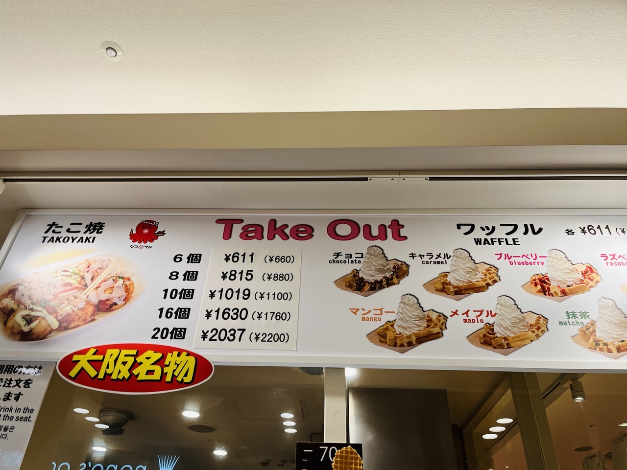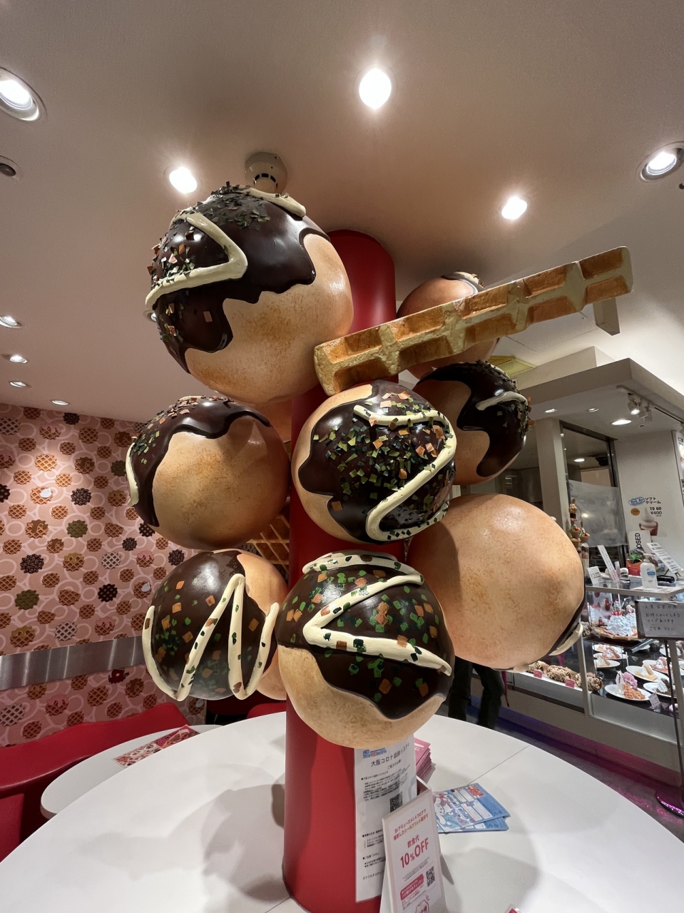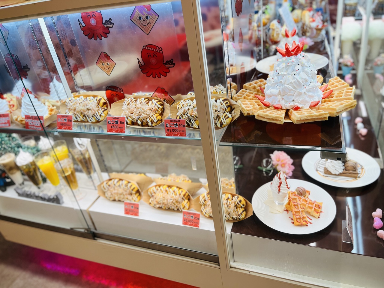 店頭に 大きな たこ焼き & ワッフル の オブジェがあって、目立っています。人目を引きます!