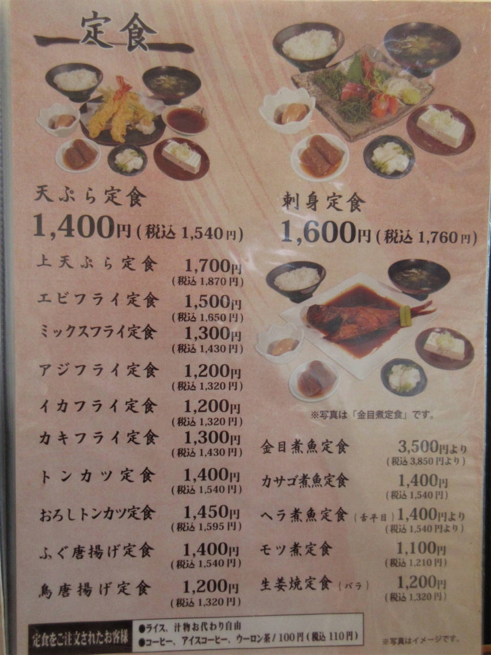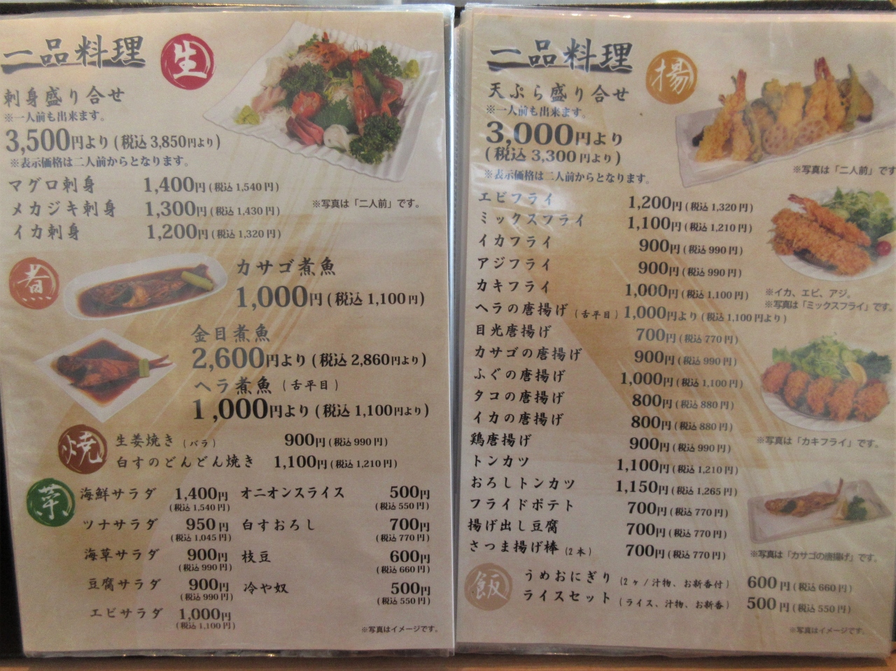 メインの揚げ魚の他に、刺身3点盛り(鮪、大きな海老、イカ)、冷や奴、キャベツとわかめのぬた、大根の煮物、大根の甘酢漬けなどと、いろいろついているのが凄く嬉しいです。