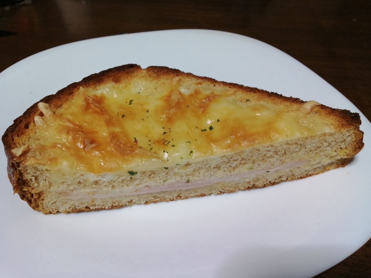 隠れ家的なパン屋さん。ずっと気になっていてようやく行けました。最近のパン屋は週1営業なんてところが増えたけどブラウは週5、そのためか混んでいませんでした(というか私1人だった)。お陰でゆっくり選べました。計8個購入。私はその内の1つ、「クロックムッシュ」(税込302円)をいただきました。トーストにハムとチーズを挟み、さらにチーズとホワイトソースを乗せて焼き上げたパンです。ずっしりと重く、1個食べたら結構お腹膨れます。お味は…この組み合わせなら美味しいに決まってます。