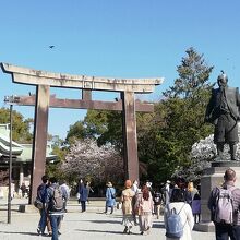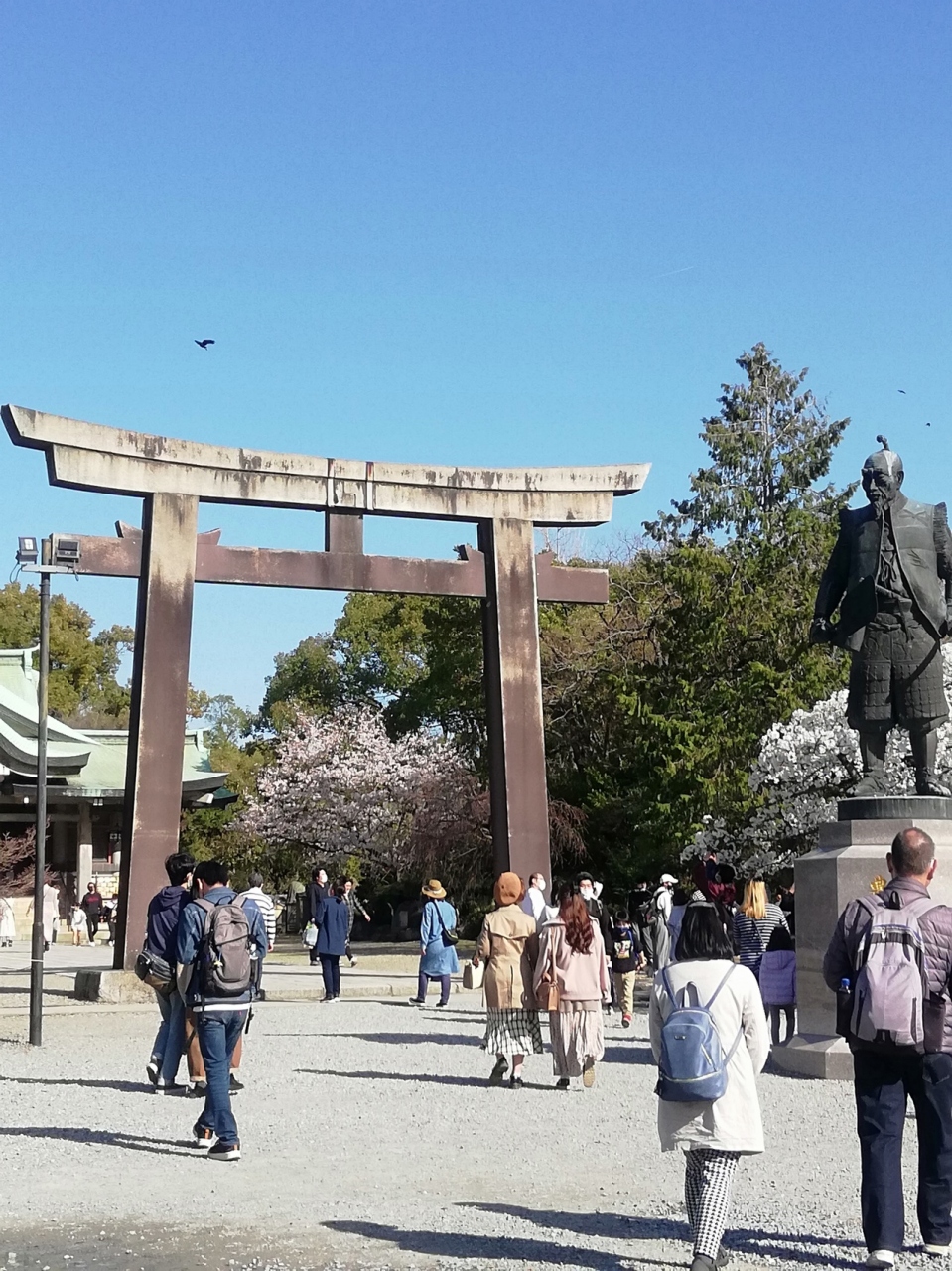 桜の時期に行きました。とにかく人がいっぱいで、神社内の参拝には行列ができていました。