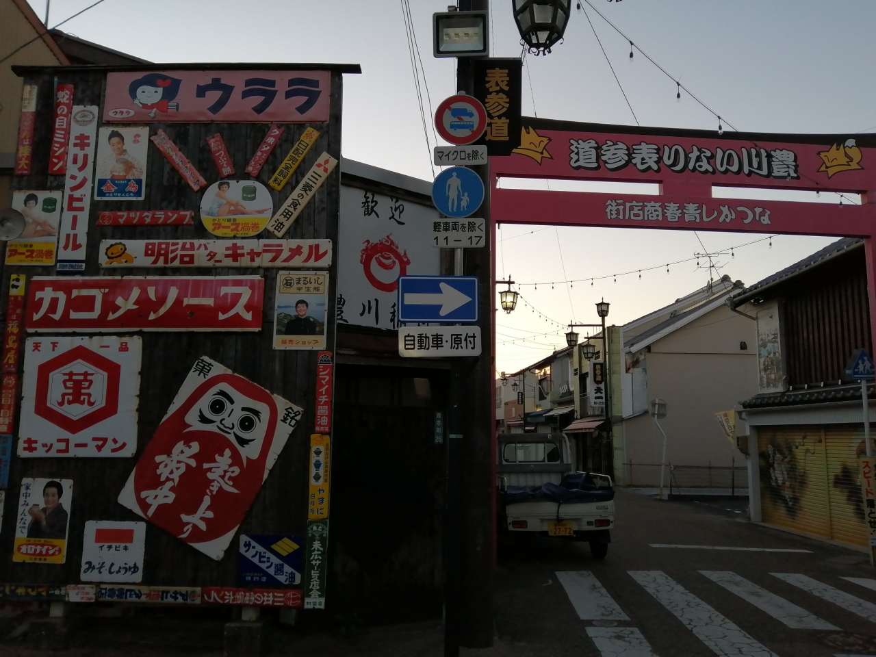 表参道には「なつかし青春商店街」の看板が出ていますが、確かに昭和の香りがする昔ながらの商店街で、昭和時代の看板なども飾られています。