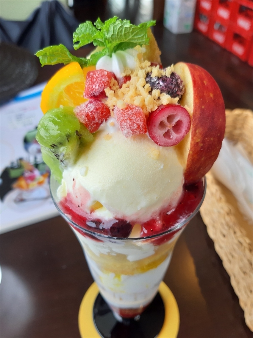 食事はしなかった代わり、フルーツパフェとアイスコーヒーで冷たさとおいしさが味わえ、ゆっくり休めた場所になりました。