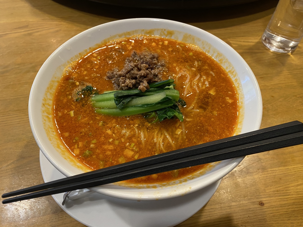 板橋区の住宅街にある謎の?中華料理の名店です。麻婆豆腐や酢豚が名物ですが、この日は一人だったので坦々麺を注文。スパイスが絶妙!こちらも絶品ですね。ライスは付かないのでストイックに麺とスープを堪能しました。汁なしより汁派ですね!