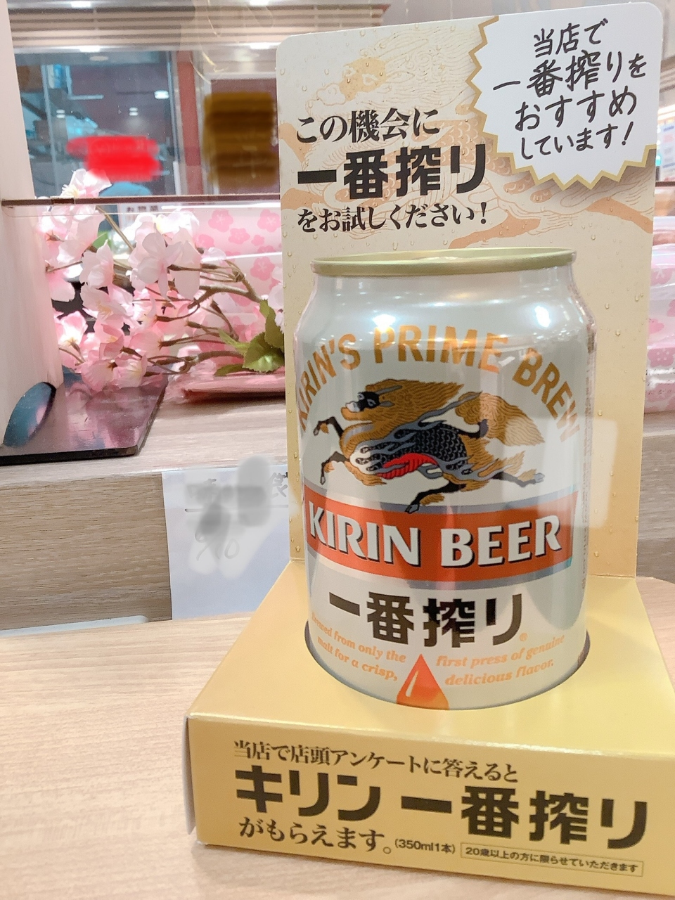 地下食品売場でお買物するとキリン一番搾り貰えました(キリンと協賛イベント)