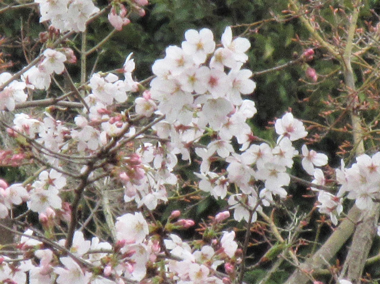 5週間前は梅の花を少し見られただけですが、今回は数種類の品種の桜の花が咲いてとても綺麗でした。
