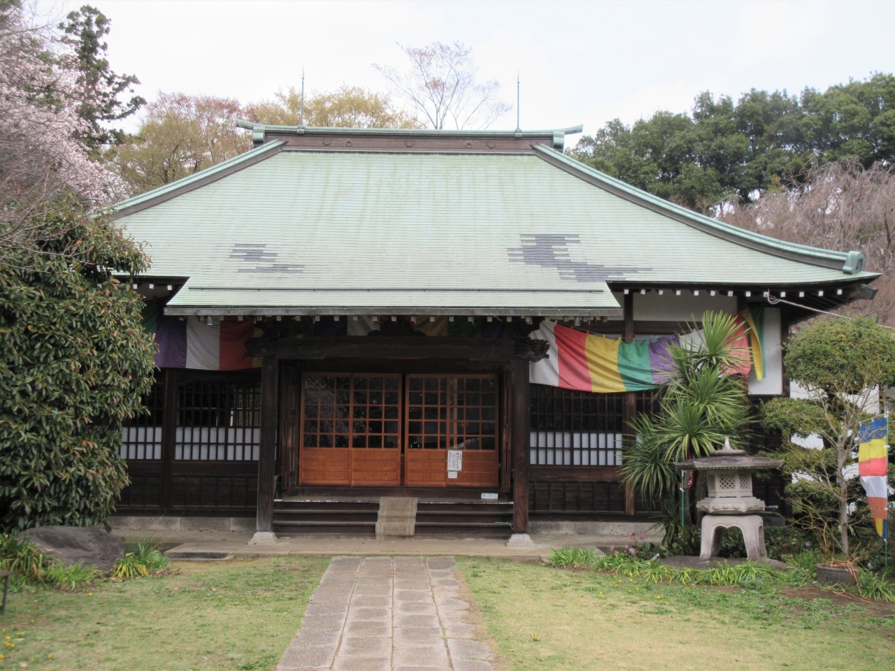 駐車場には「陽光」という、濃いピンク色の花の桜、本堂前にはシダレザクラ、墓地内では、品種名は不明ですが、白い花の桜やピンク色の花の桜が咲いていました。