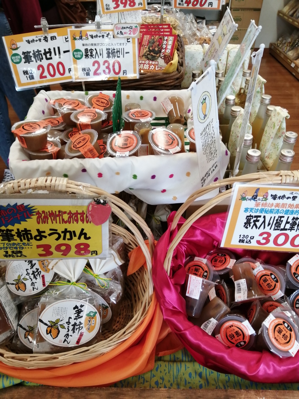 幸田町は筆柿の産地として有名なので、道の駅のお土産売り場には筆柿を使ったゼリーやようかんなどがたくさん販売されていました。