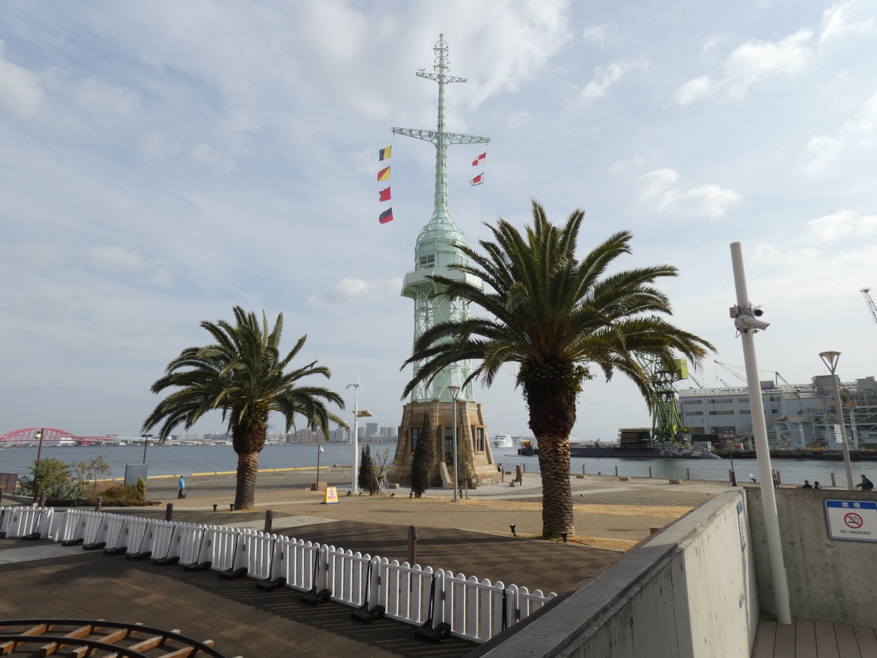 神戸ハーバーランドのUMIEモザイクの南端、大観覧車の南側に建つ高さ46.3mの塔が望楼です。大正10年(1921)に新港第4突堤に建設された旧信号所で港に出入りする船の交通整理を行っていました。当時は東洋一の信号所として注目されたが平成2年(1990)役目を終え、貴重な建造物として平成4年(1992)現在地に移築保存されています。美しい望楼です。