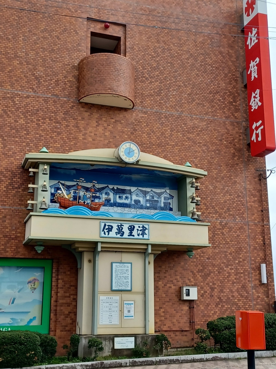 伊万里駅から伊万里川に向かう道中、川の手前の佐賀銀行の建物にあります。