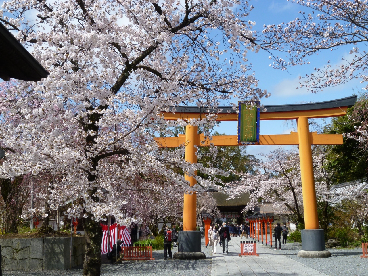 平野神社は、北野天満宮の北側、紙屋川を西側に渡ったところに神社の鳥居があります。北野天満宮を参拝した後に立ち寄りました。桜が丁度見ごろを迎えた時期で、いい時に来れてよかったです。京都の桜の名所として平安時代から名高く、「魁桜」「寝覚桜」「平野妹背桜」「手弱女桜」「突葉根桜」など50種、約400本もの桜が植えられているそうです。以前は自由に見学できましたが、2020年からは桜苑の入場料500円が必要になっています。台風で倒壊した拝殿修復の費用を募るためなので、快く入場料を払わせていただきました。ここは「平野の夜桜」として有名で、次回には夜桜を楽しみに訪れたいです。