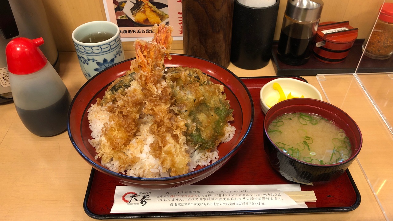 阪急宝塚線・庄内駅前にある天丼屋さんです。天丼は500円ぐらいからあり、お手頃です。14時までのランチタイムは、ご飯大盛り無料です。また、会計時に、次回使える天ぷら追加券がもらえ、この券はエンドレスに使えるので、毎回天ぷらをトッピングすることができます。
