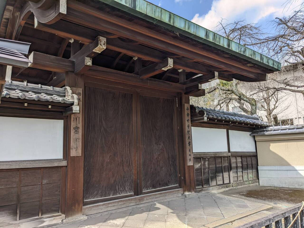 京都御苑の直ぐ近くにあり、聖アグネス教会とは、道路を挟んで斜め向かいに建っていました。現在は、平安女学院大学が所有しているようですが、有栖川宮家が高松宮家に承継された後は、京都地方裁判所の仮庁舎などとして使用されたこともあるようです。重厚感のある門は見ごたえがあって良かったです。