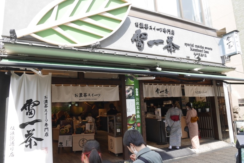 伝法院通りにある、お茶を使用したスイーツのお店。この向かいにも同系列のお店があり、お店同士クルーズ的な利用をしました。向かいでは抹茶ビールが飲めます。晴れた日のビールはおいしいですね。お濃茶スイーツということで、抹茶とはまた違うようです。(ビールは抹茶)