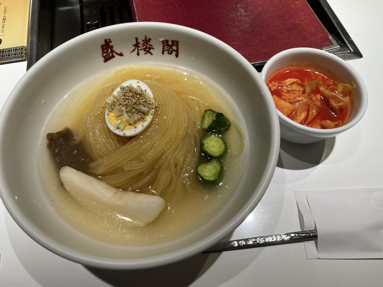 盛岡駅前にあるビルの2階にある焼肉店。一人で焼き肉というのもなんだったし、新幹線の発車時刻も迫っていたのでこの店の名物でもある冷麺を注文しました。辛味を別皿にして、好みで辛さを調節できるタイプで注文しました。