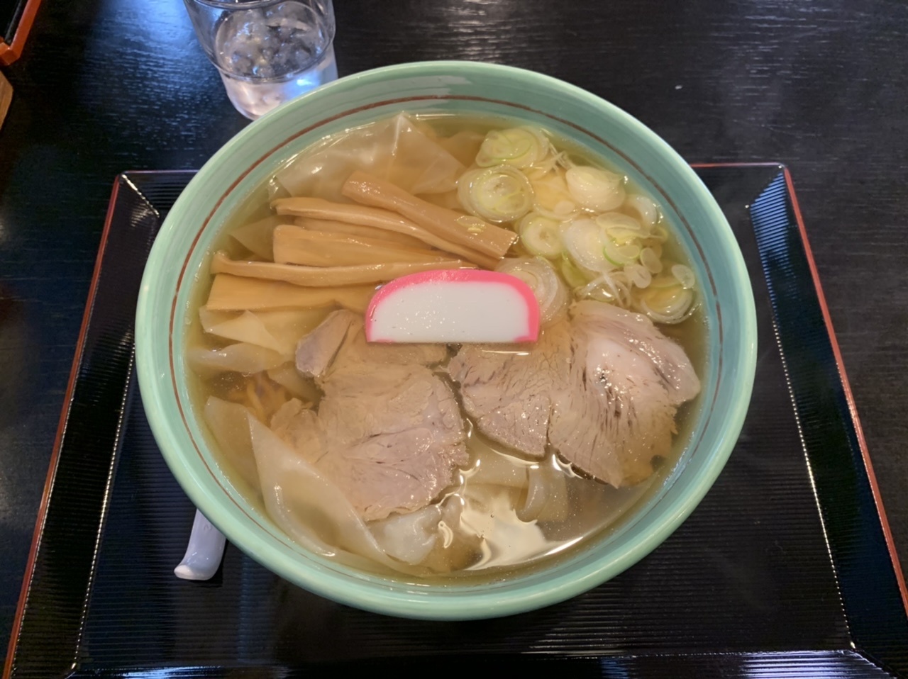 住宅街にあるラーメン屋です。一人でランチを摂りました。いただいたのはワンタンメン。酒田ラーメンの典型とでもいうべきラーメンで、あっさり魚出汁スープにストレートの中細麺、ズルズルのワンタン。食べていて、心休まります。人気店のようで、店内は満席でした。